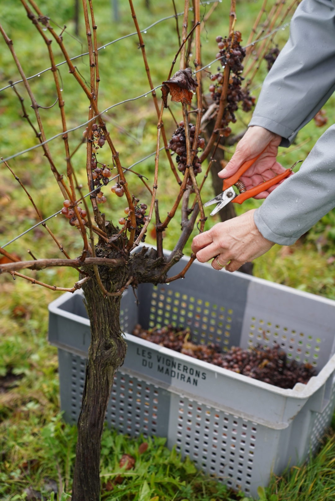 À la veille du premier jour de l’Hiver, accompagné des vignerons coopérateurs, vous irez cueillir les dernières grappes de Petit Manseng du millésime sur la parcelle de la famille Aubert, à Aydie (64).
